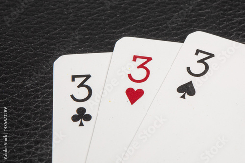 © SockaGPhoto, Obraz premium the number three on 3 different playing card suits