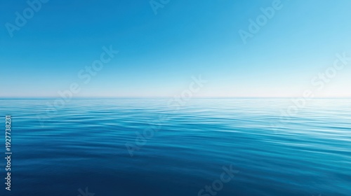 © Marta B, Obraz premium The ocean horizon stretching across a tranquil blue seascape under a clear sky