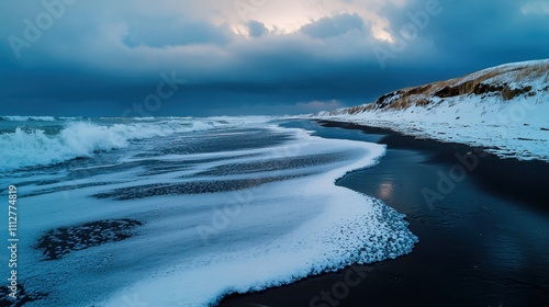 Fototapeta premium The ocean is rough and the sky is cloudy