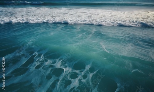 © Anna, Fototapeta premium the ocean waves are rolling in and out of the water at the same time as the sun is setting over the horizon of the ocean. generative ai