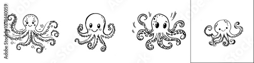 Obraz premium The octopus is a cute cartoon character isolated on white background. It's perfect for coloring pages or book illustrations.