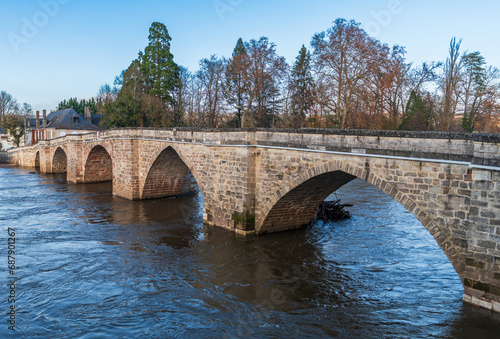 Naklejka premium The old bridge over the Vézère at Terrasson Lavilledieu in Dordogne, Nouvelle...