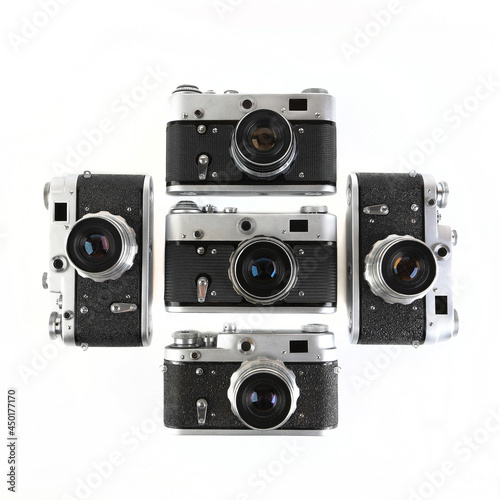 © jahet7, Fototapeta premium The old 35 mm film rangefinder cameras on white background.