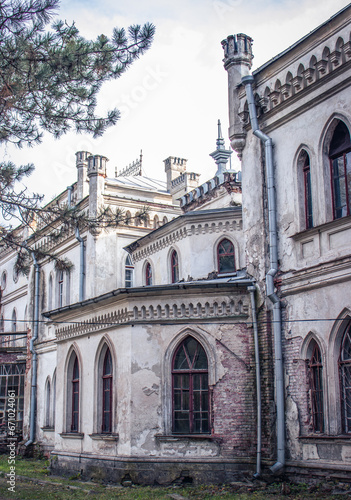 © Natalya Nepran, Fototapeta premium The old palace yard concept phot. Neo-gothic building in European town.