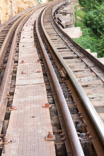 Fototapeta premium The old railway built during World War II in Kanchanaburi