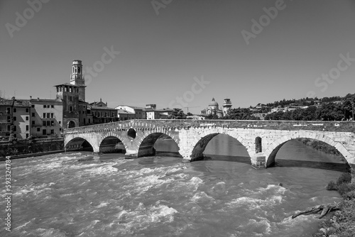 Fototapeta premium the old roman bridge in Verona spans the river Etsch
