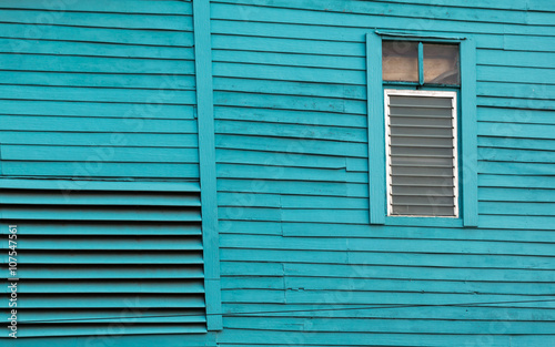 © kaipungyai, Fototapeta premium The old wooden house Painted bright blue