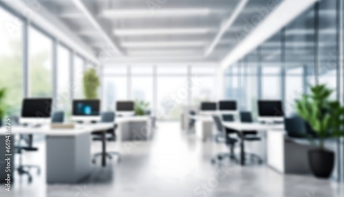 Fototapeta premium The open space office is empty and dim. Abstract light effect on office...