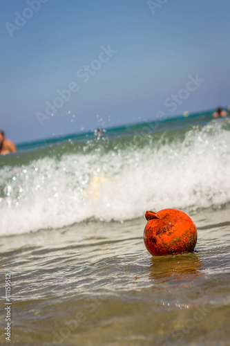 Obraz premium The Orange Buoy in the Blue Sea, Close-up