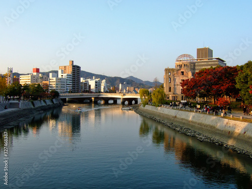 © Serg Zastavkin, Obraz premium The Ota rivet at the atomic bomb hypocenter. Hiroshima Peace Memorial Park. Hiroshima. Japan