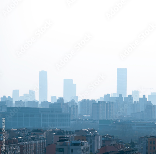 © 子程 龚, Obraz premium The outline of the urban skyline under backlighting