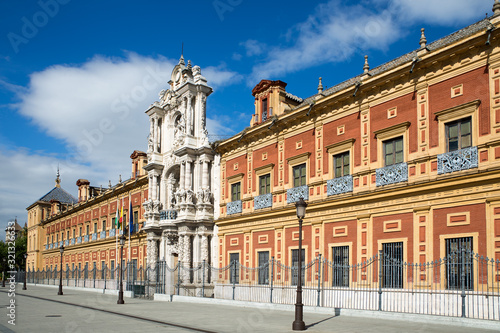 Naklejka premium The Palace of San Telmo (Palacio de San Telmo), formerly the Universidad de Mareantes (a university for navigators), now is the seat of the presidency of the Andalusian Government, Seville, Spain.
