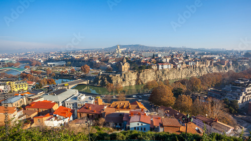 © k_samurkas, Fototapeta premium The Panoramic View Of Tbilisi, Sameba, Metekhi, autumn, Georgia