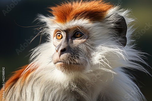 Fototapeta premium The patas monkey also known as the wadi monkey or hussar monkey. Generative AI