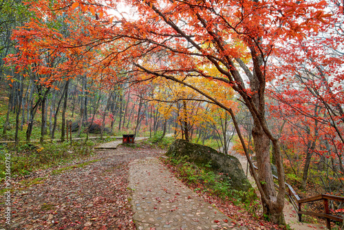© 孝通 葛, Fototapeta premium The path in autumn red leaves forest.