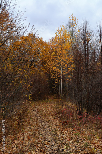 © Happy Dragon, Obraz premium The path with fallen leaves in the autumn forest