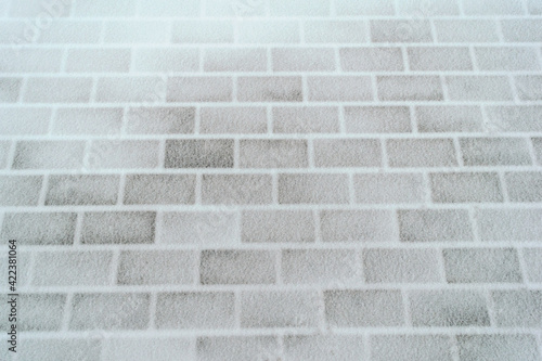 Naklejka premium The paving slabs are covered with a thin layer of snow. Texture. Background.