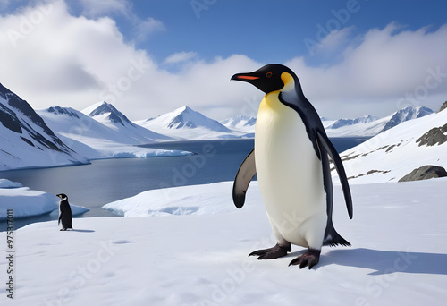 © Overhaul, Fototapeta premium The penguins stands in front of a mountain
