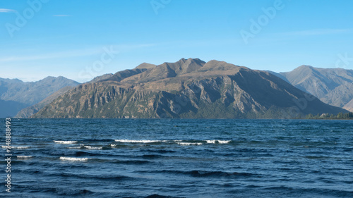 Naklejka premium The peninsula of Lake Wanaka in the fresh morning of summer under a clear blue sky, Otago, New Zealand.
