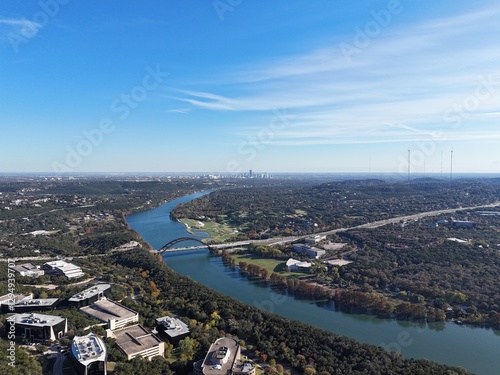 © Shaun, Fototapeta premium The Pennybacker Bridge and Lake Austin through the rolling hills