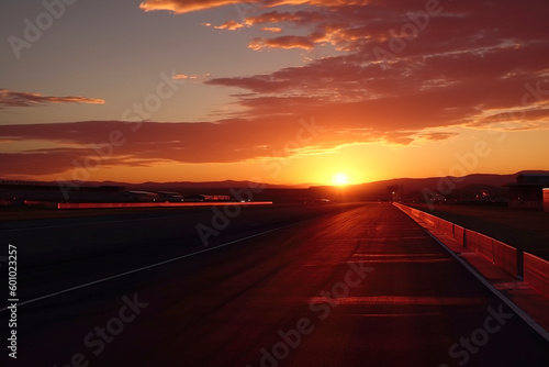 Fototapeta premium The Perfect Finish: Racing into the Sunset on the Circuit created with Generative AI technology