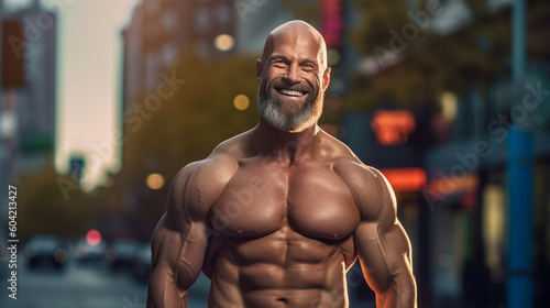 Fototapeta premium the perfect man, muscles, shirtless, smiling happy, Gigachad. Generative AI