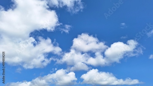 Fototapeta premium The photo of Summer blue sky with fluffy clouds in the middle. Captured from...