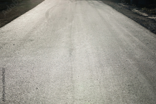 © fotofotofoto, Naklejka premium The photo shows a close-up of grey asphalt road