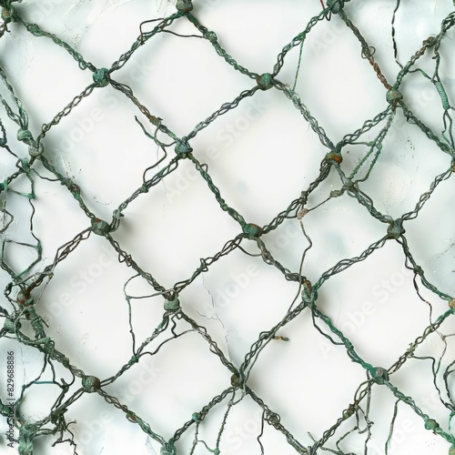© MNFTs, Fototapeta premium The photo shows a green fishing net with a white background.
