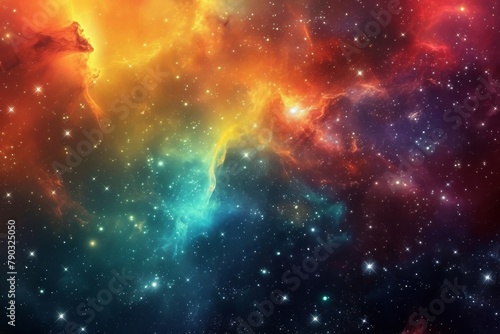 Fototapeta premium The photo shows a vibrant and luminous space filled with numerous stars, captivating the viewer with its vibrant colors and vastness, Colorful space nebula designed in abstract form, AI Generated