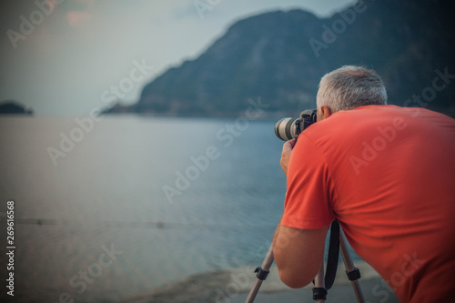 © Андрей Жуковский, Obraz premium the photographer takes a photo on the sea in the mountains