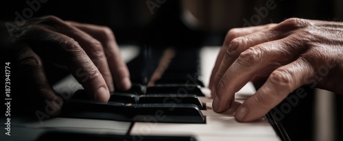 © Studio Nova, Obraz premium The Piano Keys Under Skilled Hands Create an Intimate Musical Moment in Low Light