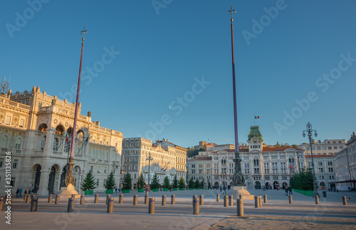 Fototapeta premium The piazza Unita at Trieste city, Italy at sunset. The square is also close to Trieste seaport and Miramare bay.