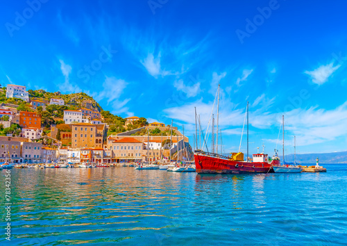 Obraz premium The pictorial port of Hydra island in saronic gulf in Greece