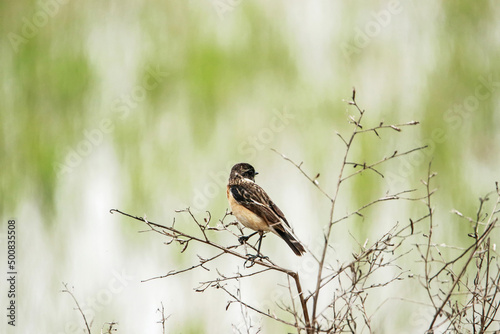 © Sarin, Fototapeta premium The Pied Bushchat on the branch