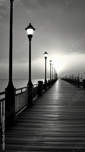 Obraz premium The pier boardwalk railing sunset.