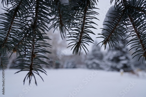 Obraz premium The pine branches in the snow