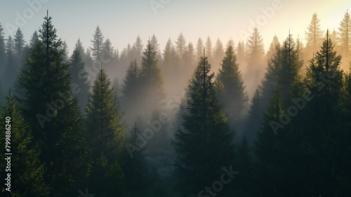 © Doaibu_PNG, Obraz premium the pine tree forest is illuminated by the afternoon light