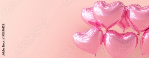 Fototapeta premium The Pink Heart Balloons Floating Against a Soft Pastel Peach Background for...