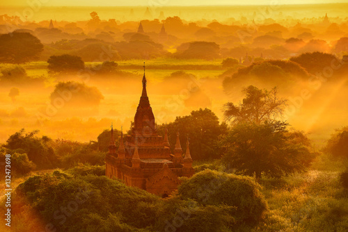 Fototapeta premium The plain of Bagan on during sunrise,sunlight effact,Mandalay Myanmar