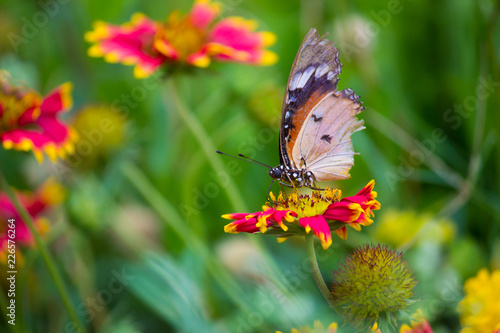 Obraz premium The Plain Tiger butterfly sitting on the flower plant with a nice soft...