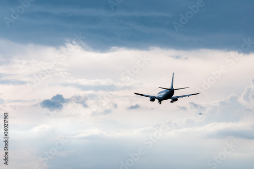 Fototapeta premium The plane comes in to land on the background of clouds