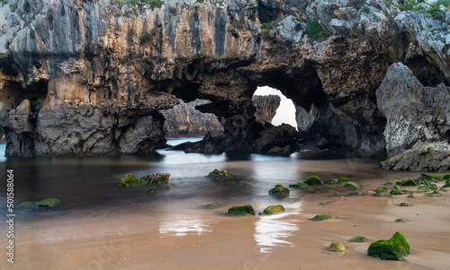 © makasana photo, Fototapeta premium the Playa de Cuevas del Mar beach in northern Spain