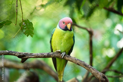 © susan flashman, Obraz premium The plum-headed parakeet is a mainly green parrot. The male has a red head