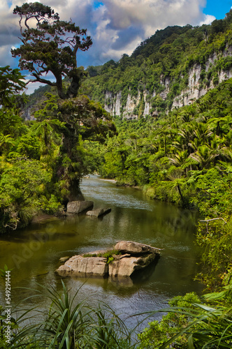 Fototapeta premium The Pororari River Gorge, in the dense rainforest of the karst mountains of Paparoa National Park, West Coast, South Island, New Zealand.
