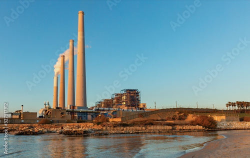 Obraz premium The power plant on the Mediterranean coast at sunset