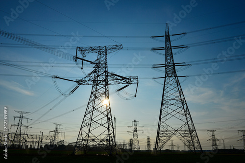 © qiujusong, Fototapeta premium The power supply facilities of contour in the evening