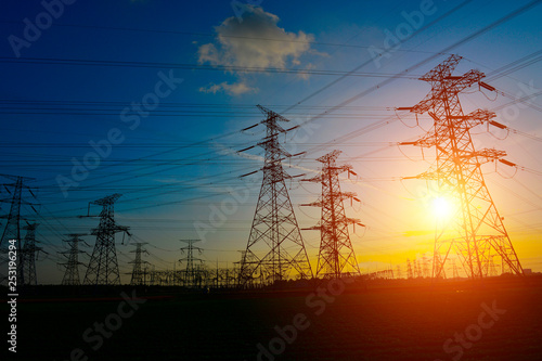 © qiujusong, Fototapeta premium The power supply facilities of contour in the evening