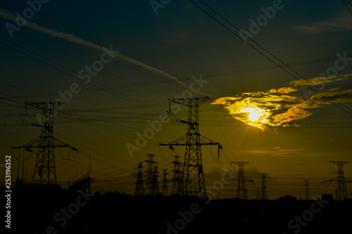 © qiujusong, Fototapeta premium The power supply facilities of contour in the evening