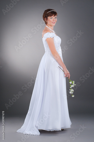 © iryf, Fototapeta premium the pregnant bride in wedding dress with apple flower
